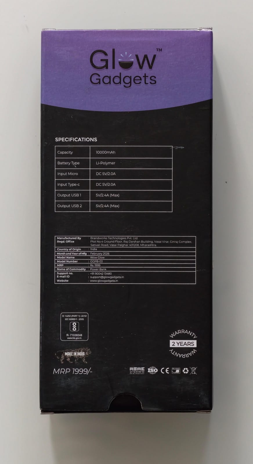 - 10000 mAh with High Density Polymer cell